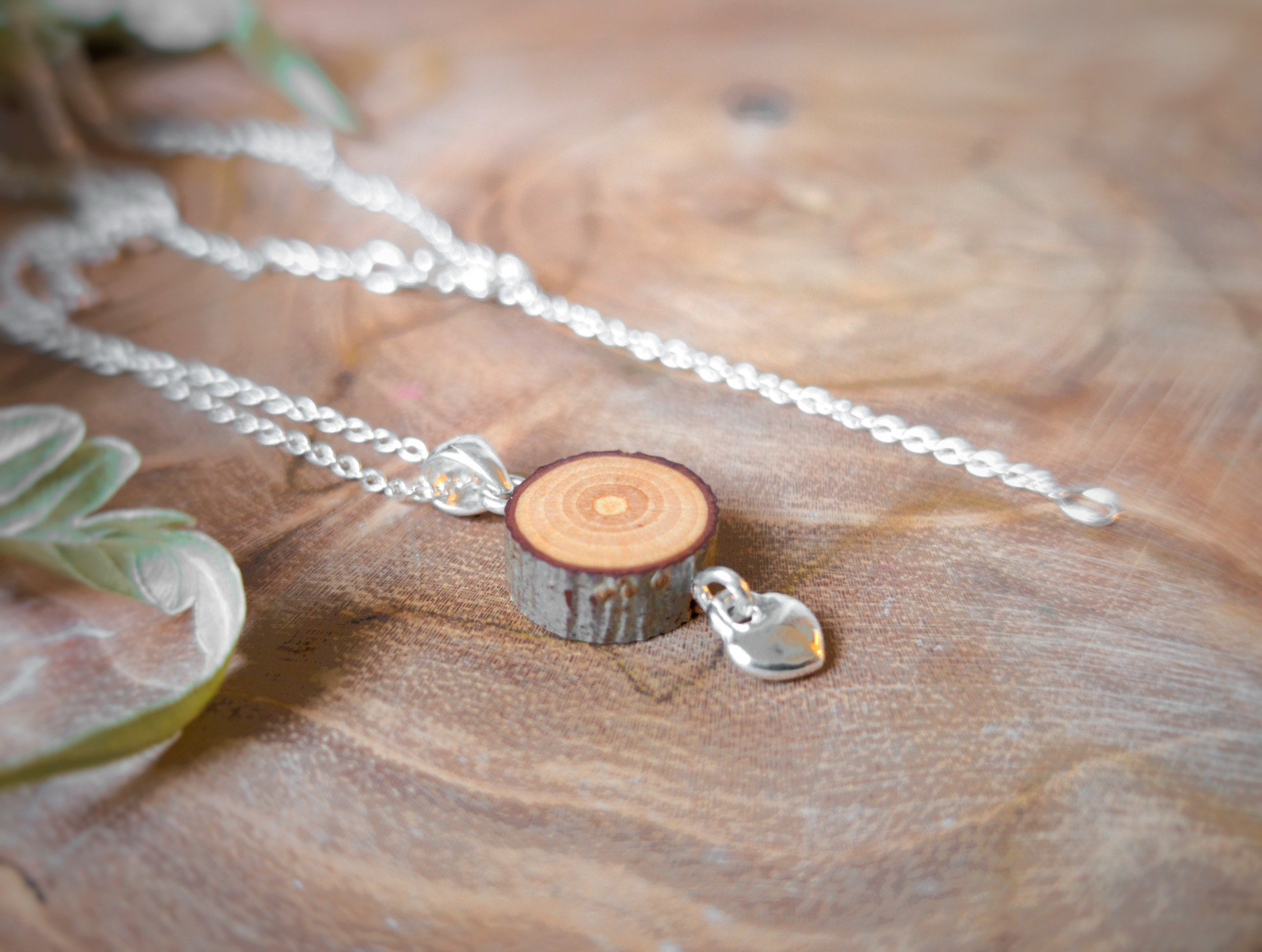 Suloisessa Sydänpuu -korusarjassa puuosaan on kiinnitetty pieni hopeinen sydän. Metalliosat ovat laadukasta nikkelivapaata sterling hopeaa.